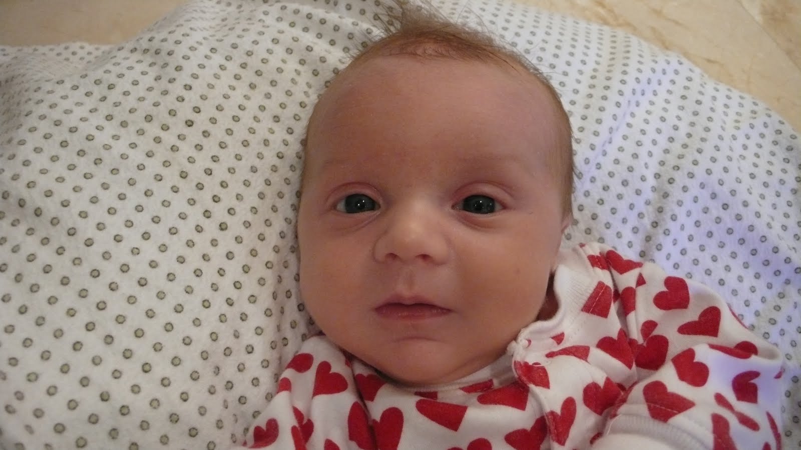 We are 6 weeks old today! We are changing so much lately. We grab onto things, try to talk and roll over, and even try to get our own binkies back in our mouths (with no success to mommy's disappointment).